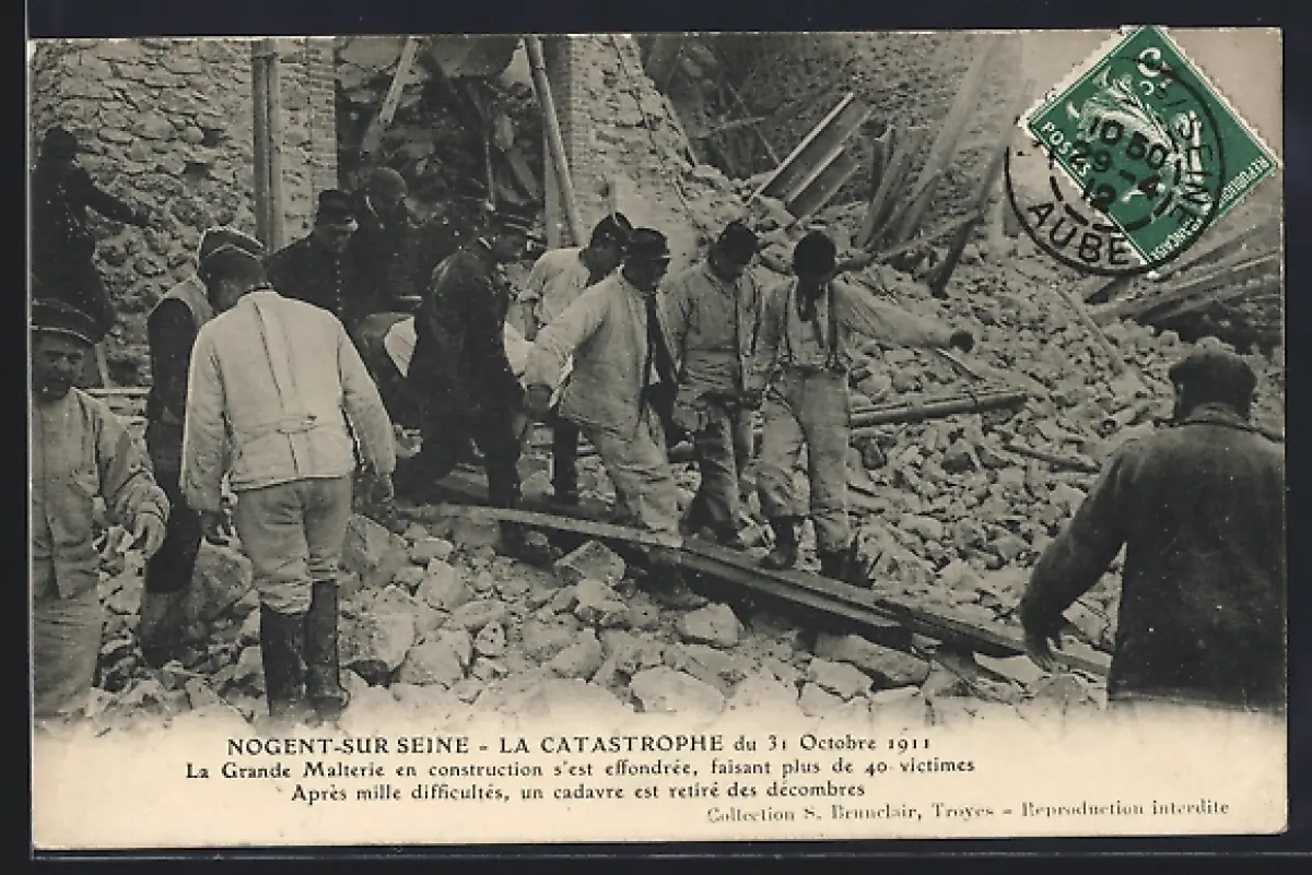 AK Nogent-sur-Seine, Le Catastrophe du 31 Octobre 1911, Le grande Malterie en construction s`est effondrée, 40 victim