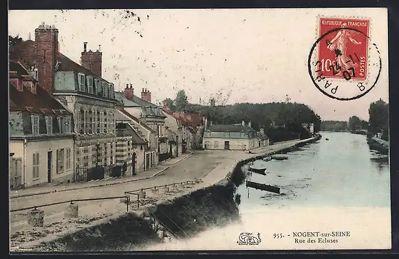 AK Nogent-sur-Seine, Rue des Écluses avec vue sur le canal et les maisons environnantes