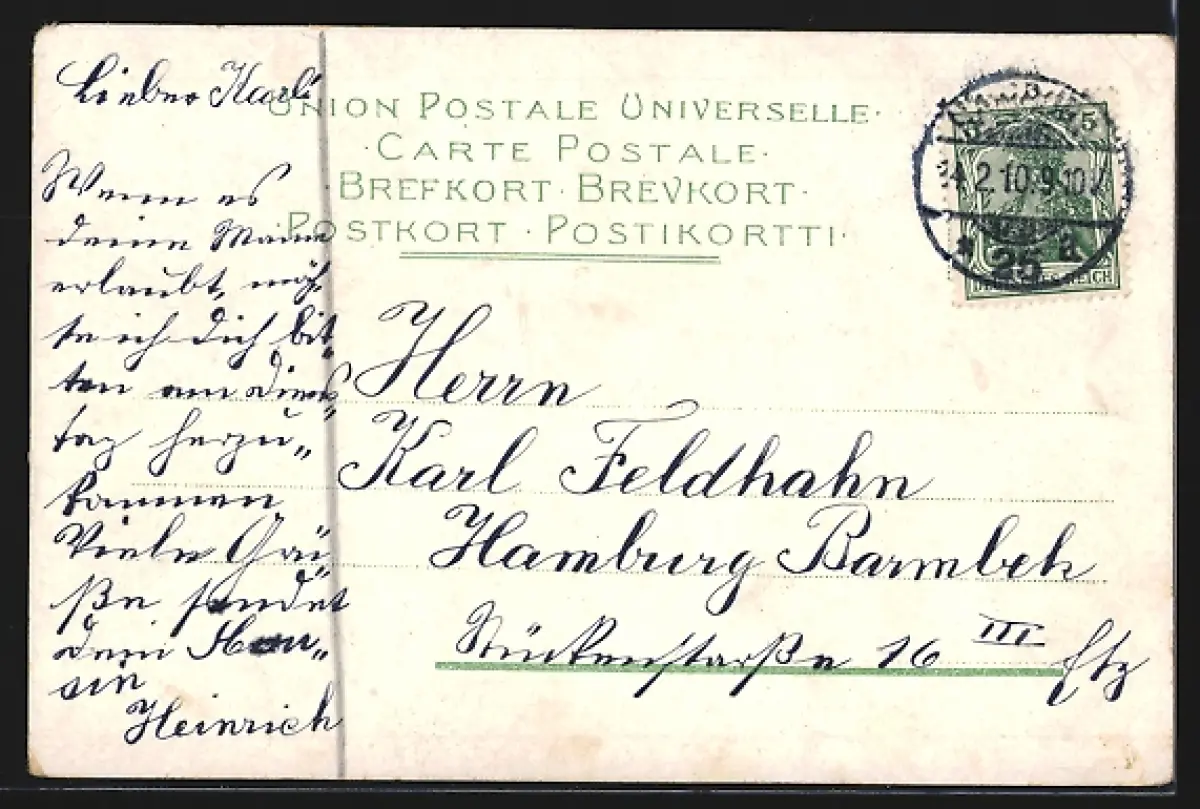 alte Ansichtskarte, gelaufen 1910, Eckknick li. oben, Stempelspur, guter Zustand