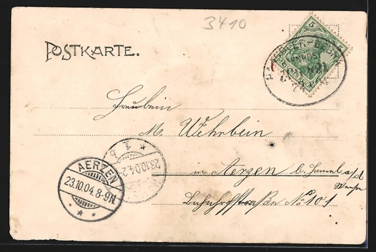 alte Ansichtskarte, gelaufen 1904, kl. Randschäden li. oben u. unten re., guter Zustand