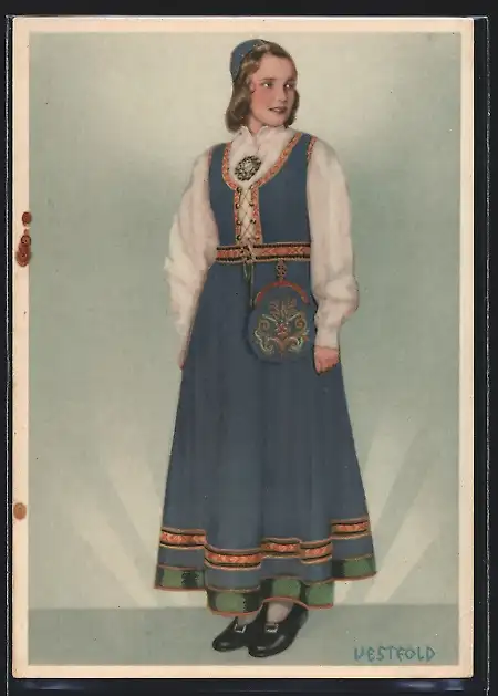 AK Norwegerin in der Tracht von Vestfold