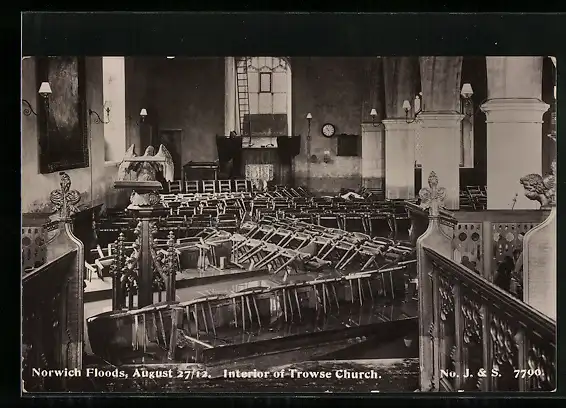 AK Norwich, Floods of 1912, Interior of Trowse Church