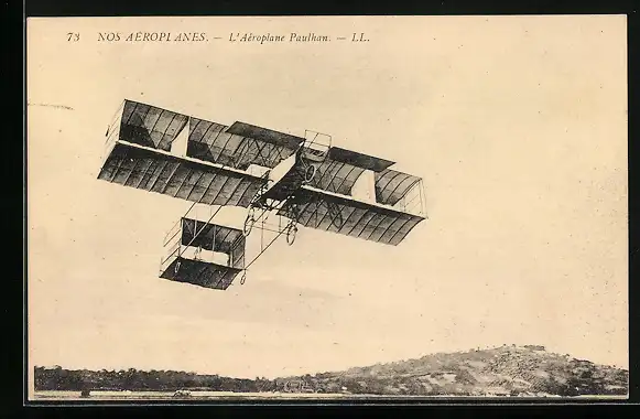 AK Nos Aéroplanes, L`Aéroplane Paulhan, Flugzeug in der Luft
