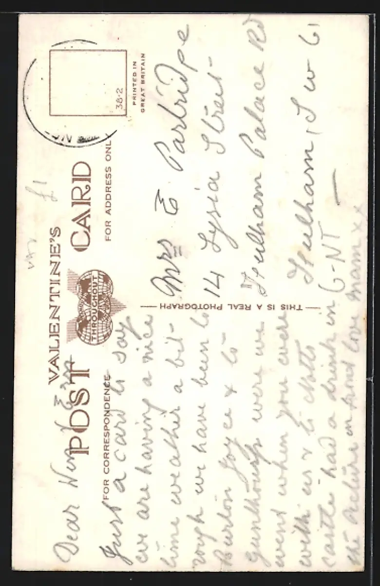 alte Ansichtskarte, gelaufen, Briefmarke entfernt, kl. Einriss unten mittig