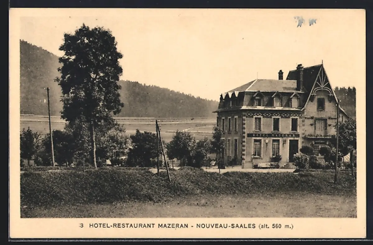 AK Nouveau-Saales, Hôtel-Restaurant Mazeran avec vue sur la campagne environnante