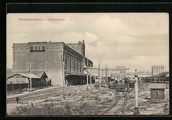 AK Noworossijsk, Aufzug in einer Fabrikanlage mit Güterbahnhof