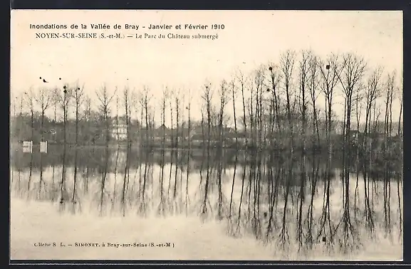 AK Noyen-sur-Seine /S.-et-M., Le Parc du Château submergé