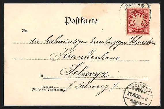 alte Ansichtskarte, gelaufen 1898, guter Zustand