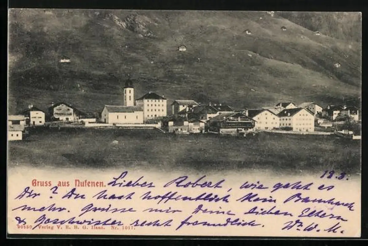 AK Nufenen, Ortspanorama mit Kirche