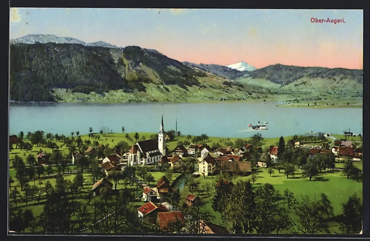 AK Ober-Aegeri, Totalansicht mit See aus der Vogelschau