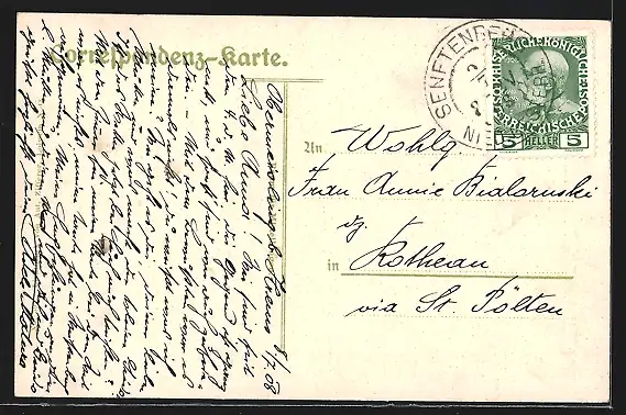 alte Ansichtskarte, gelaufen 1908, Stempelspur, guter Zustand