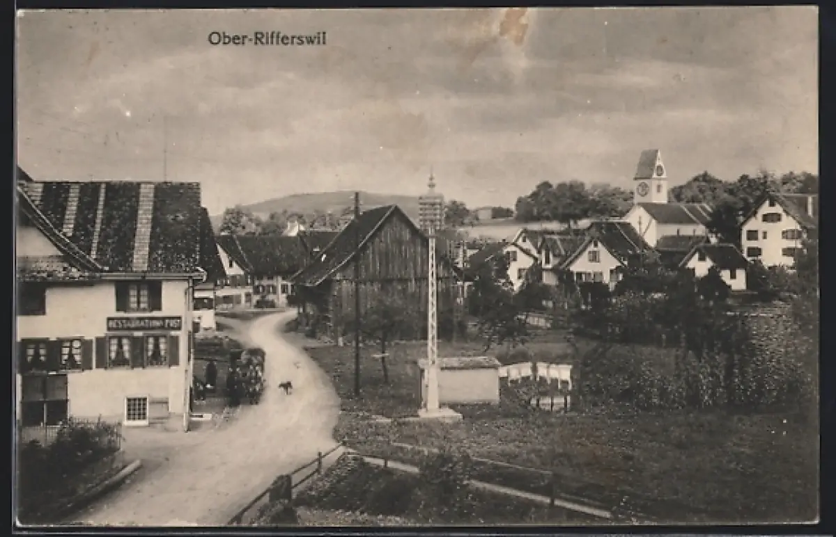 AK Ober-Rifferswil, Restaurant zur Post mit Strassenpartie