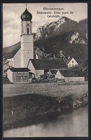 AK Oberammergau, Ammerpartie: Kirche gegen die Laberköpfe