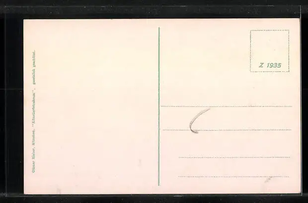 Personenbezogene Daten auf der Rückseite der Karte wurden durch blauen Textmarker unkenntlich gemacht. Die blauen Stellen sind auf die Vorderseite durchgeweicht und wirken sich negativ auf das Postkartenfoto aus