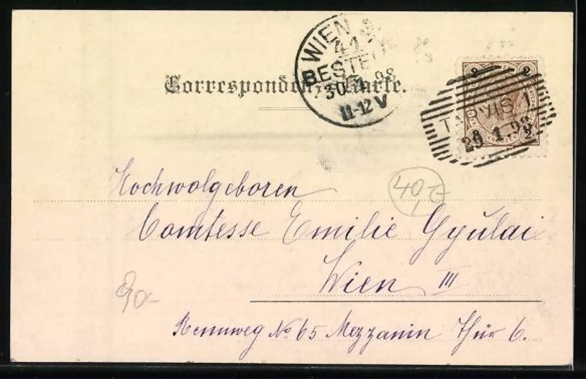alte Ansichtskarte, gelaufen 1898, Stempelspur, guter Zustand