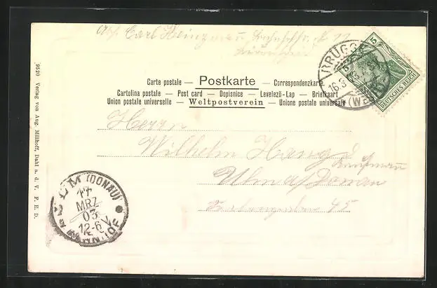 alte Ansichtskarte, gelaufen 1903, guter Zustand