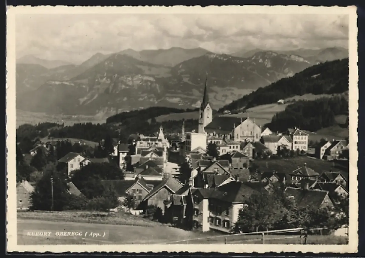 AK Oberegg /App., Totalansicht mit Bergpanorama aus der Vogelschau