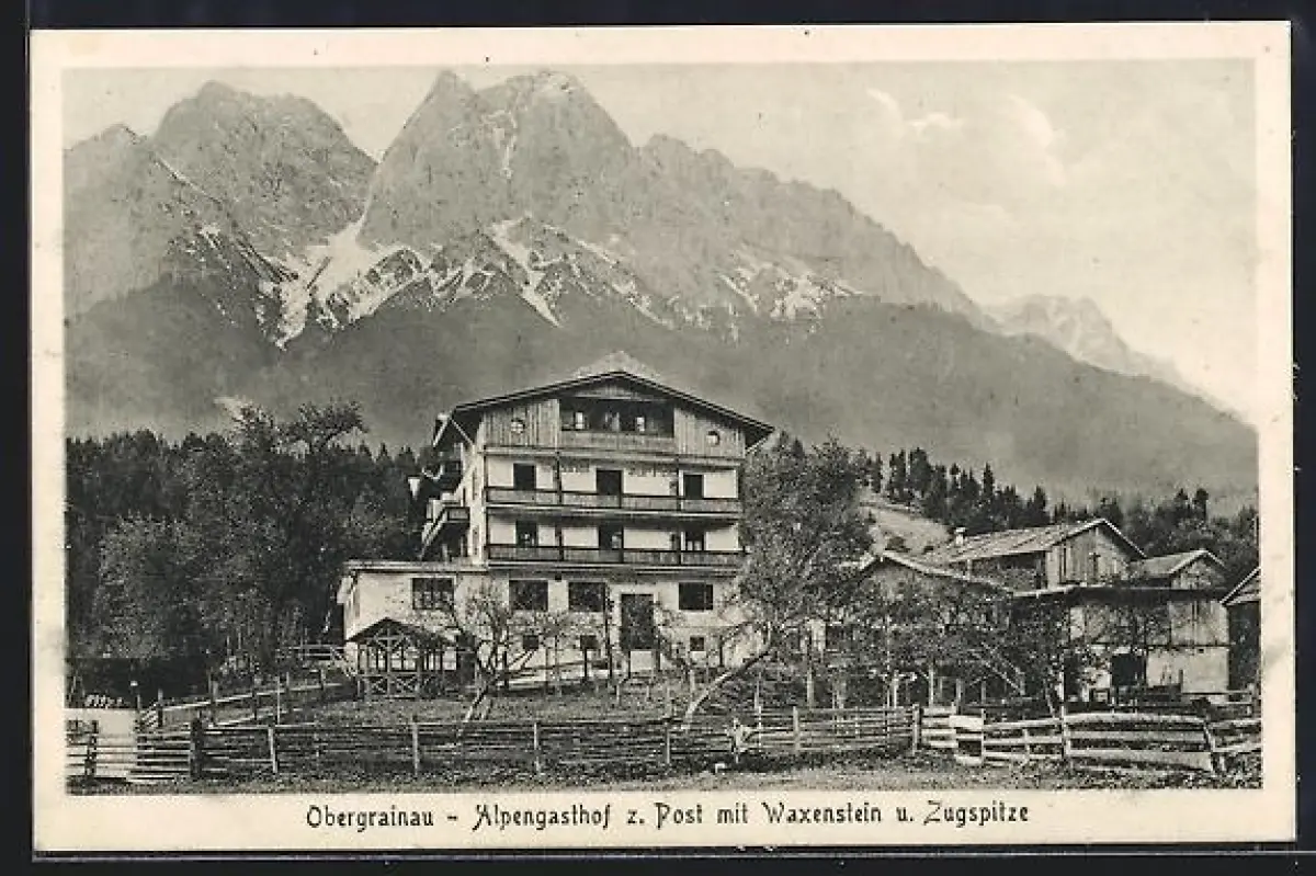 AK Obergrainau, Alpengasthof z. Post mit Waxenstein, Zugspitze