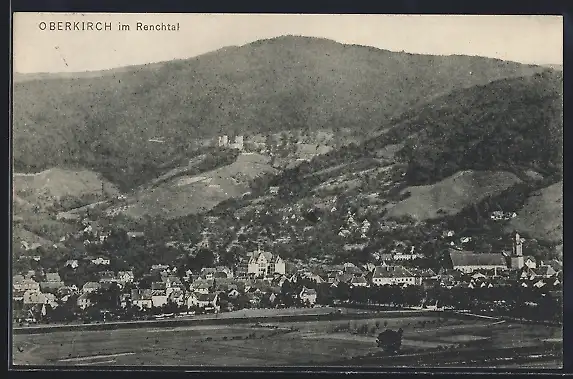 AK Oberkirch / Baden, Panorama-Ansicht mit Schloss und Renchtal