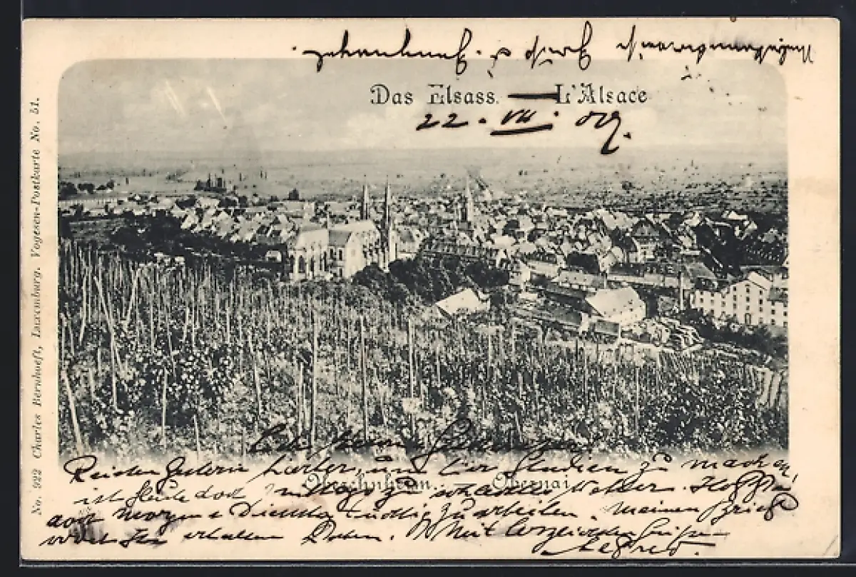 AK Obernai /Alsace, Vue sur la ville et les vignobles en Alsace