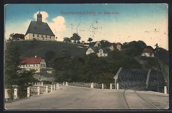 AK Oberneuschönberg bei Olbernhau, Ortspartie an der Eisenbahnbrücke