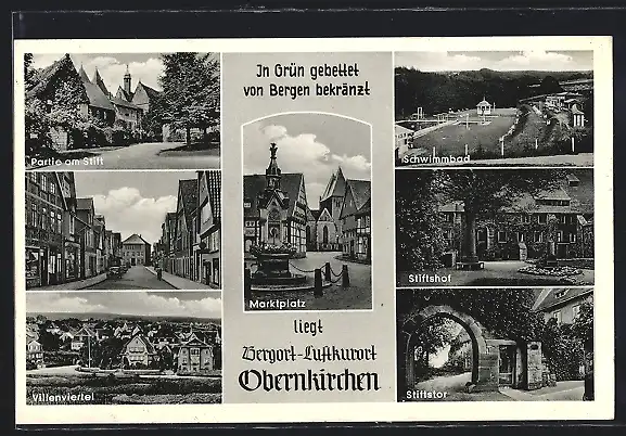 AK Obernkirchen, Strassenpartie mit Geschäften, Villenviertel, Schwimmbad