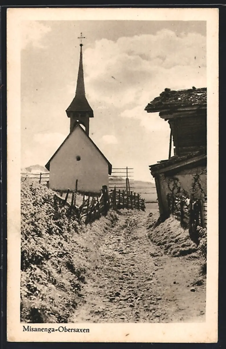 AK Obersaxen, Misanenga, Ortspartie mit Kirche