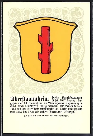AK Oberstammheim, Wappen auf Blatt-Ornamenten, Info-Text