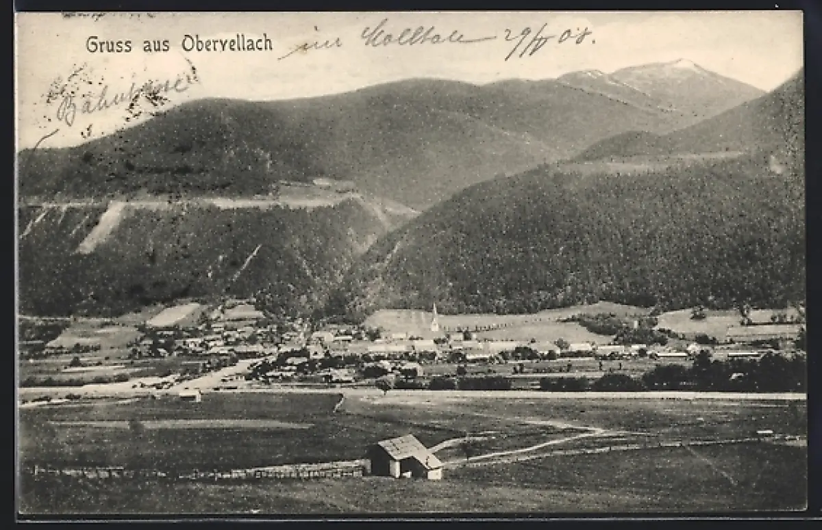 AK Obervellach, Panorama mit Berghintergrund