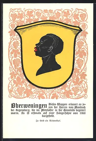 AK Oberweningen, Wappen auf Weintrauben-Ornamenten, Info-Text