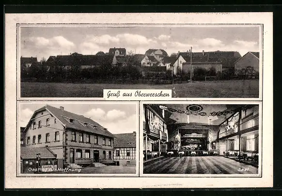AK Oberwerschen, Ortsansicht, Gasthof zur Hoffnung mit Saal