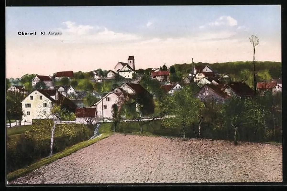 AK Oberwil /Aargau, Teilansicht mit Kirche