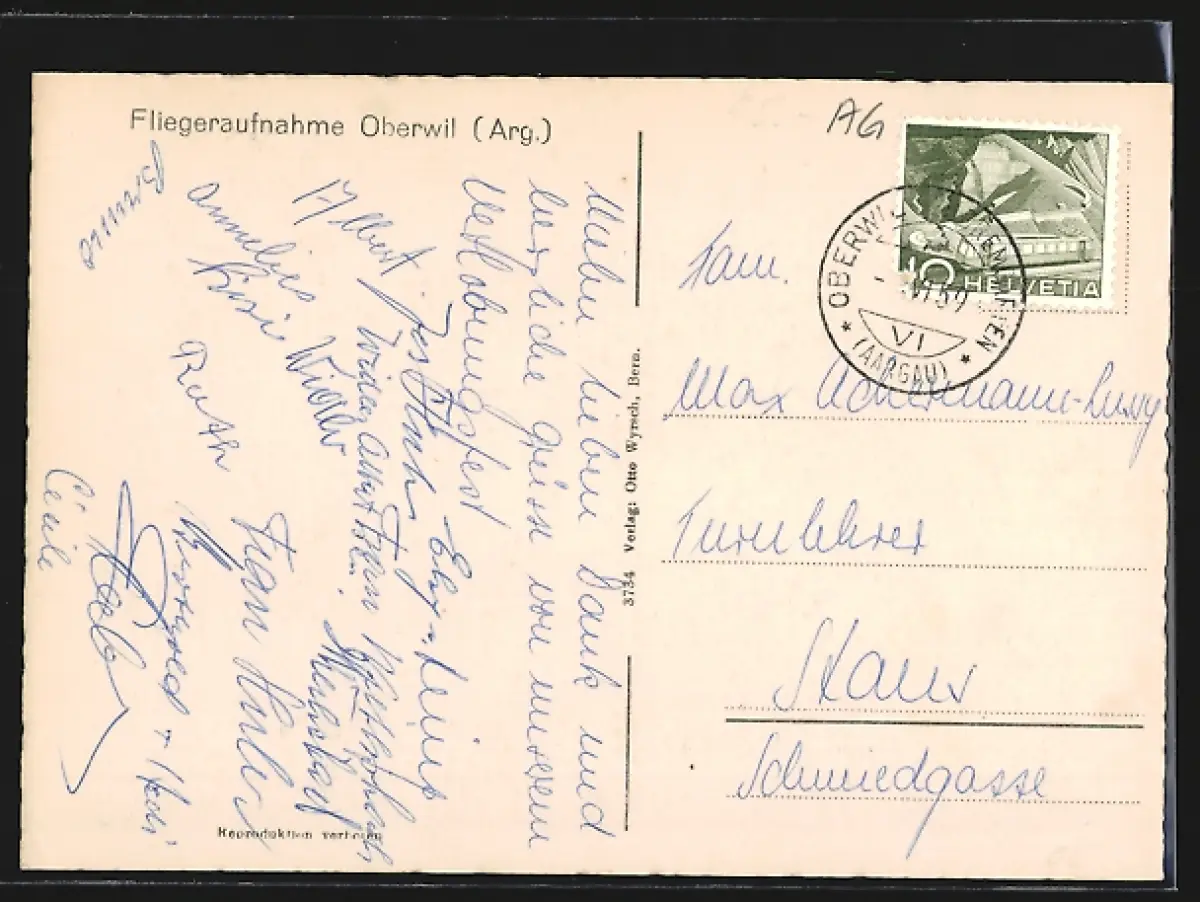 AK Oberwil /Arg., Teilansicht, Fliegeraufnahme