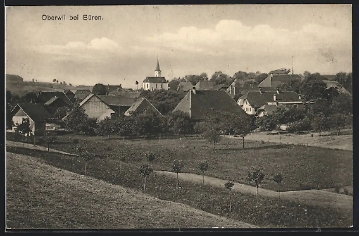 AK Oberwil bei Büren, Ortspartie mit Kirche