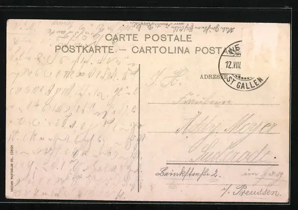 alte Ansichtskarte, gelaufen 1910, Briefmarke entfernt, rückseitig Oberflächenschaden, guter Zustand