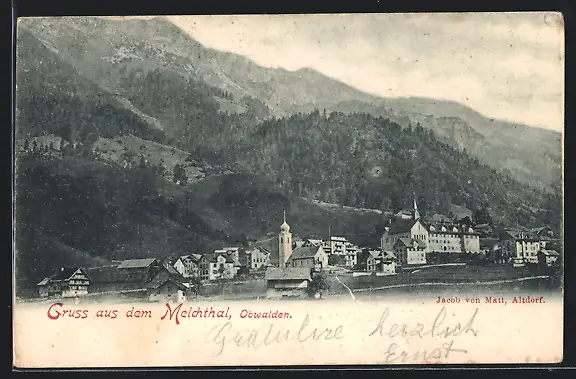 AK Obwalden-Melchthal, Teilansicht mit Kirche