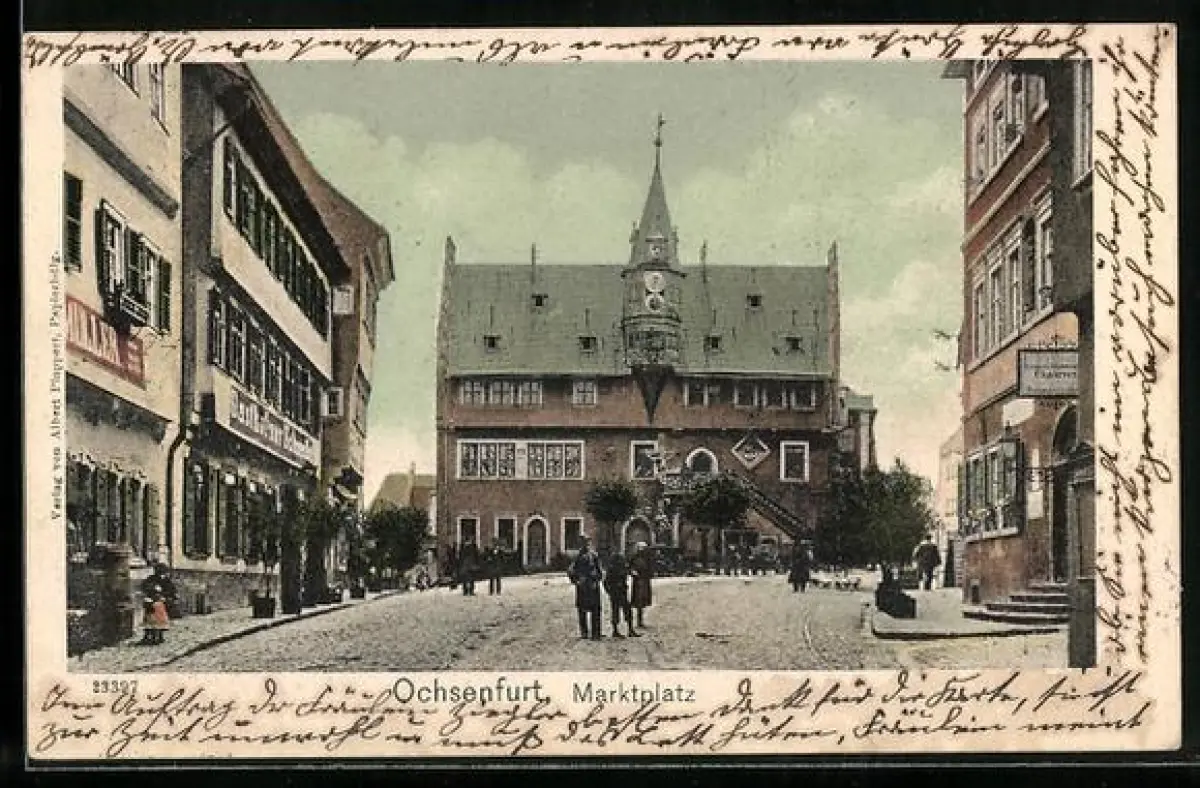 AK Ochsenfurt / Main, Marktplatz, Gasthof, Geschäfte, um 1900