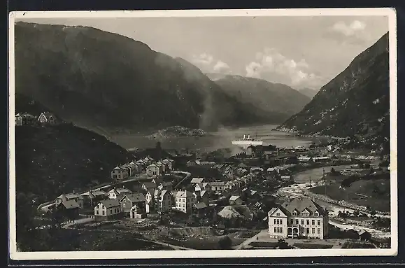 AK Odda, Hardangerfjord, Ortsansicht mit Hafen und Gebirge