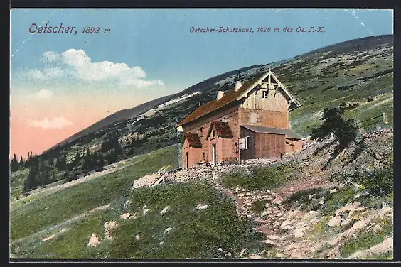 AK Oetscher-Schutzhaus, Ansicht am Hang des Oetschers