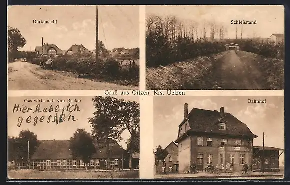 AK Oetzen, Bahnhof, Gasthof von Becker, Schiessstand