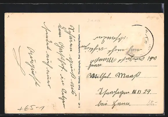 alte Ansichtskarte, gelaufen, Briefmarke entfernt, rückseitig Oberflächenschaden, guter Zustand