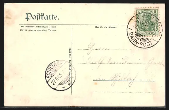 alte Ansichtskarte, gelaufen 1905, fleckig am rechten Rand, guter Zustand