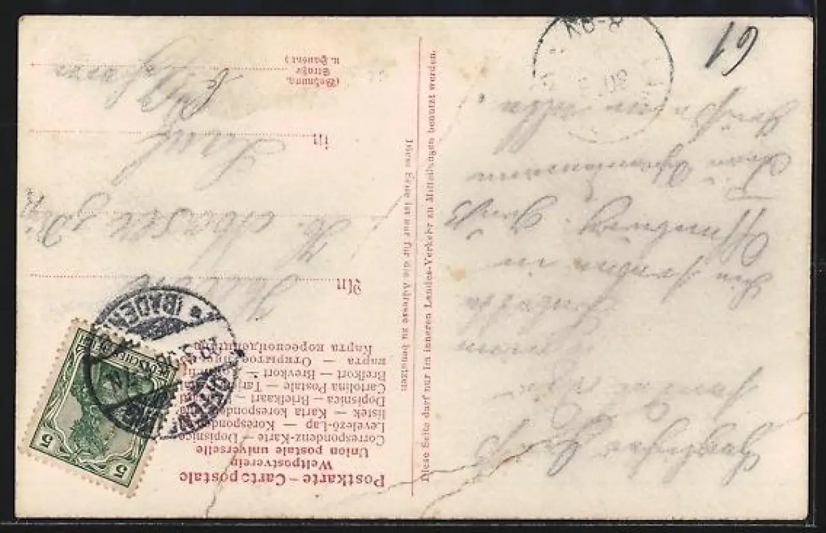 alte Ansichtskarte, gelaufen 1906, Eckknick oben rechts, Bugspur mittig, guter Zustand