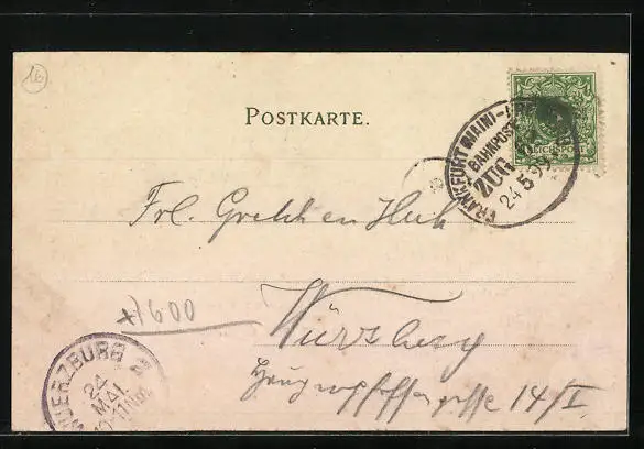 alte Ansichtskarte, gelaufen 1899, Papierrest Kante li. oben, guter Zustand