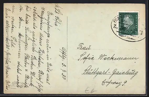 alte Ansichtskarte, gelaufen 1930, Abriebspur li. oben, guter Zustand