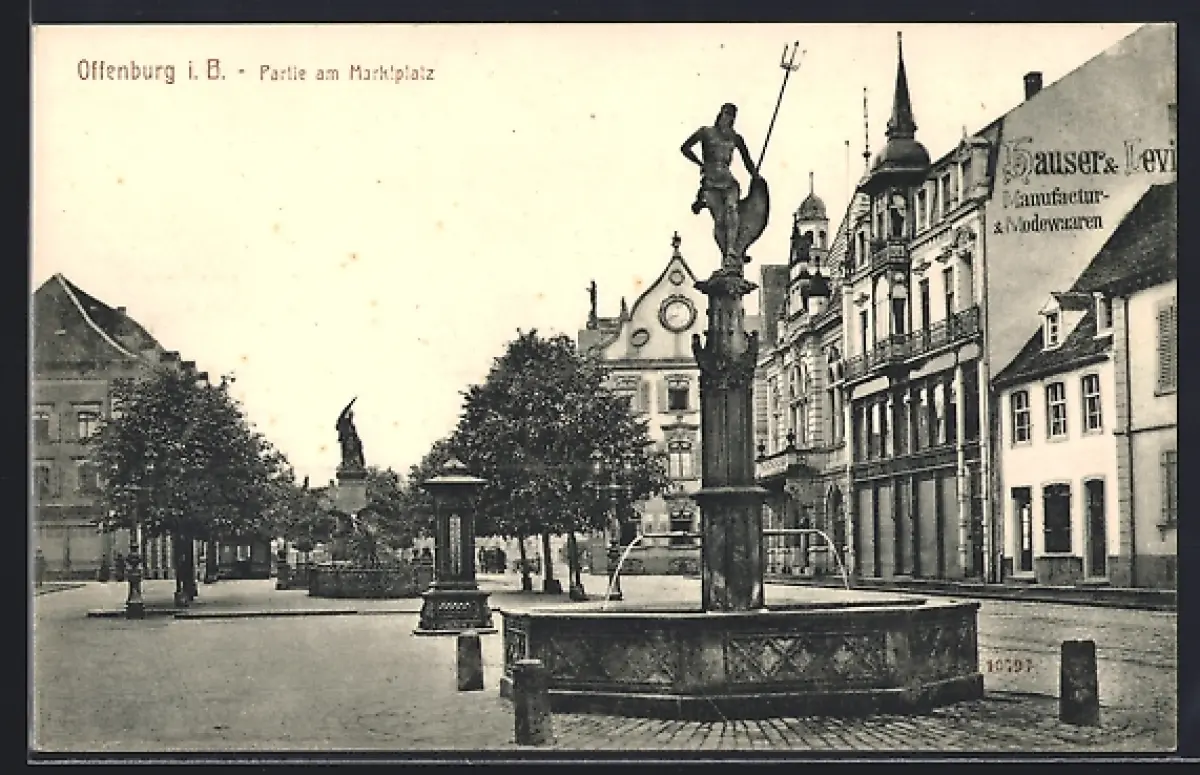 AK Offenburg i. B., Partie am Marktplatz, Modegeschäft