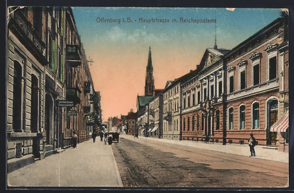 AK Offenburg i. B., Partie in der Hauptstrasse mit Reichspostamt