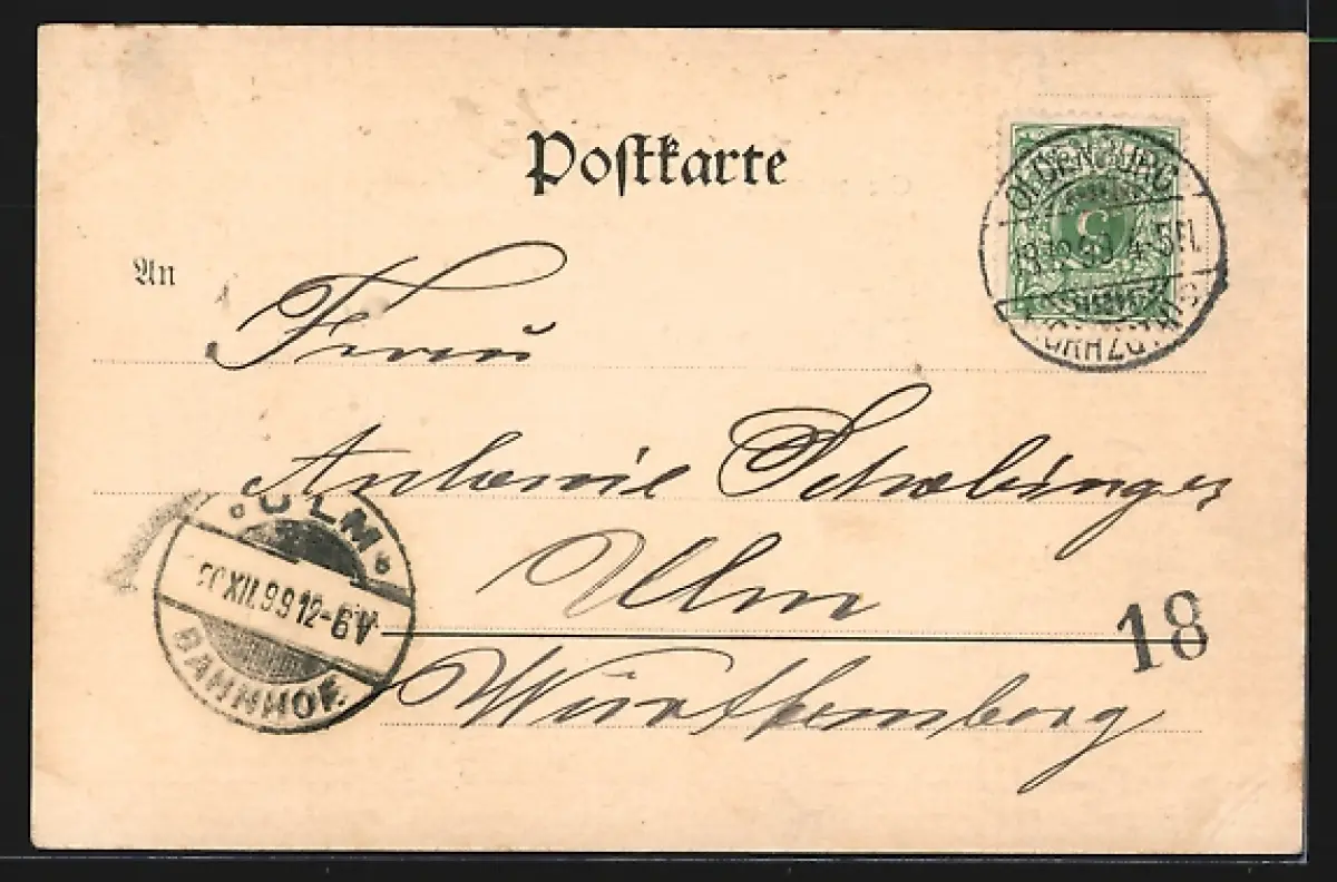 alte Ansichtskarte, gelaufen 1899, Stempelspur, guter Zustand