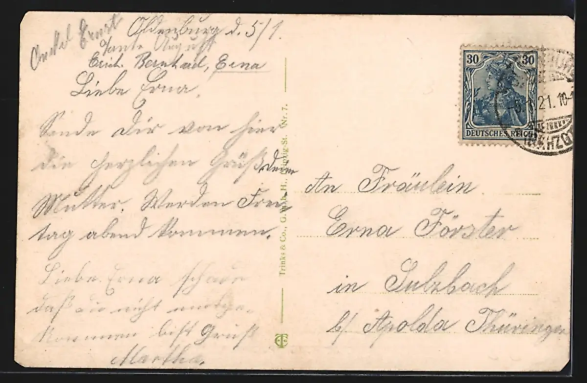 alte Ansichtskarte, gelaufen 1921, guter Zustand
