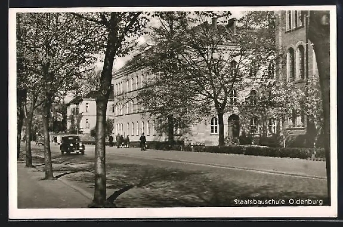 AK Oldenburg / Gr., Staatsbauschule mit Strassenpartie